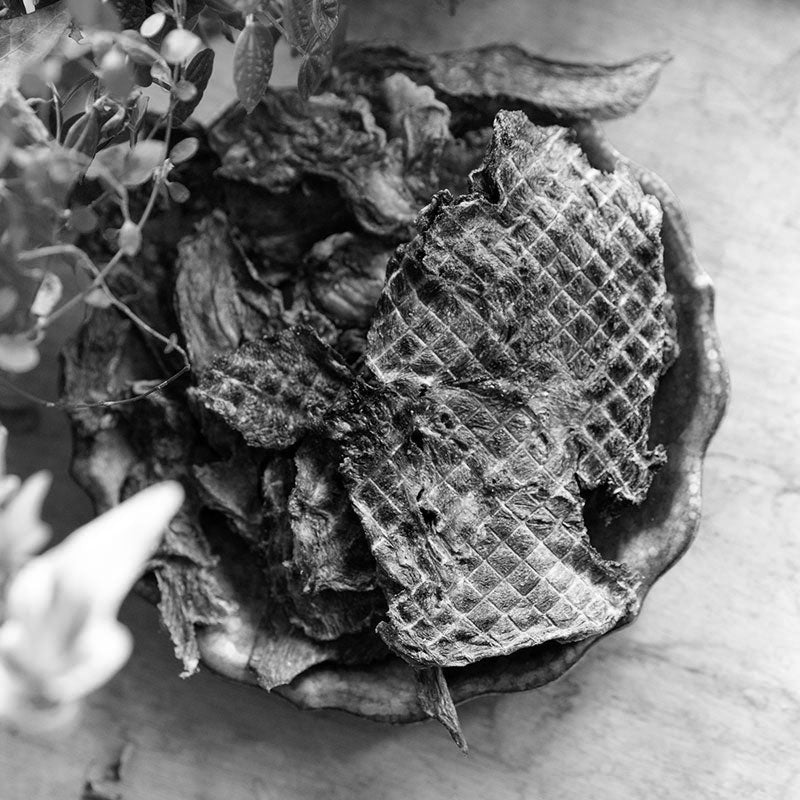 試しにアウトレット品を購入してみました。猪だけに割と脂質がある分、旨みも強いのかフードにトッピングするとまずこのジャーキーを食べています。