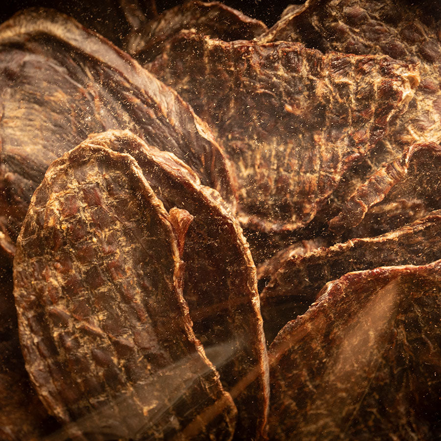 鹿肉ジャーキーと並んで人気の猪肉ジャーキー。鹿肉よりも風味が強い傾向があり、嗜好性の高さが魅力。