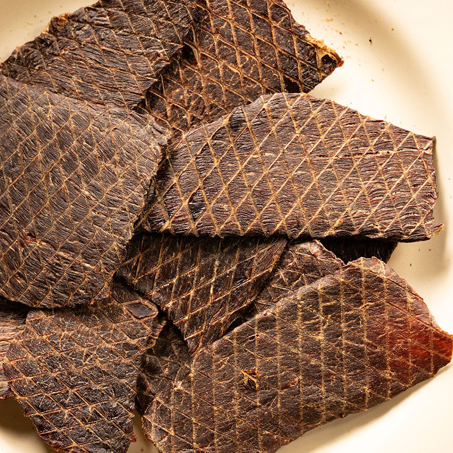 ジャーキーにおける人間用/ペット用の最大の違いは味付けの有無。人間用が塩っけが強いのに対し、ペット用のものはプレーンでお肉そのものの風味だけ。逆に人間が食べても美味しいです。