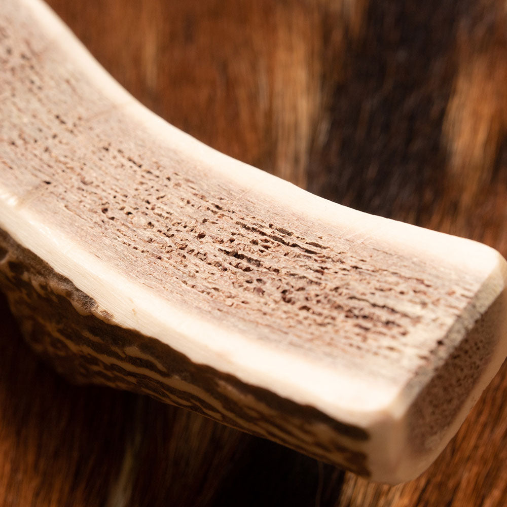 天然の鹿角(ホンシュウジカ/キュウシュウジカ/エゾジカ)を使用したドッグガムです。小型犬でも扱いやすい小ぶりなものをさらに半割にしました。